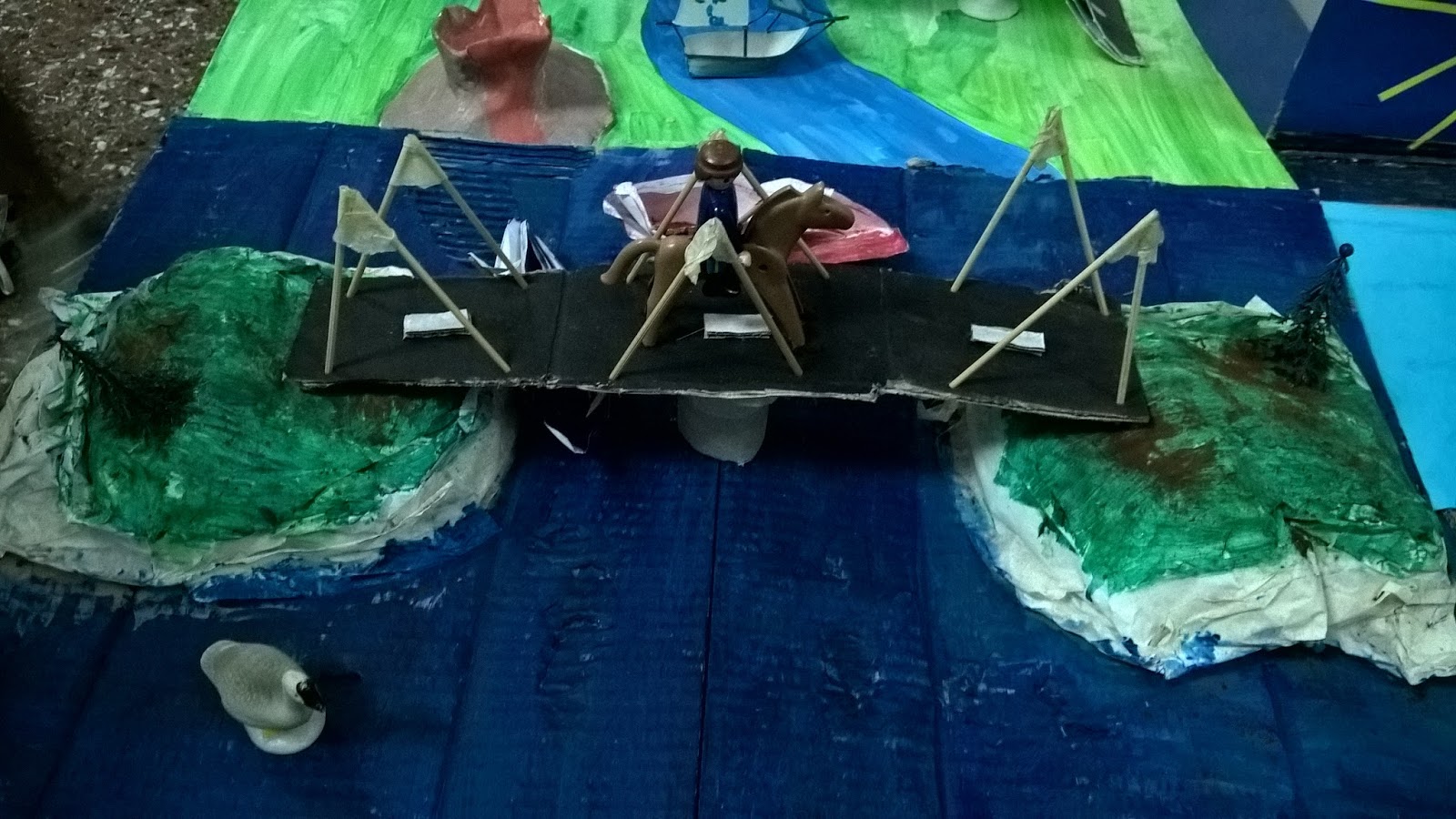 1st Pic.You can find three bridge. The first bridge is made of ice cream sticks to foot cross a river. It looks very amazing and has a very technical method to make. and the second one is a Brittan style Car and vehicles bridge. It is a very wide and smart-looking bridge.