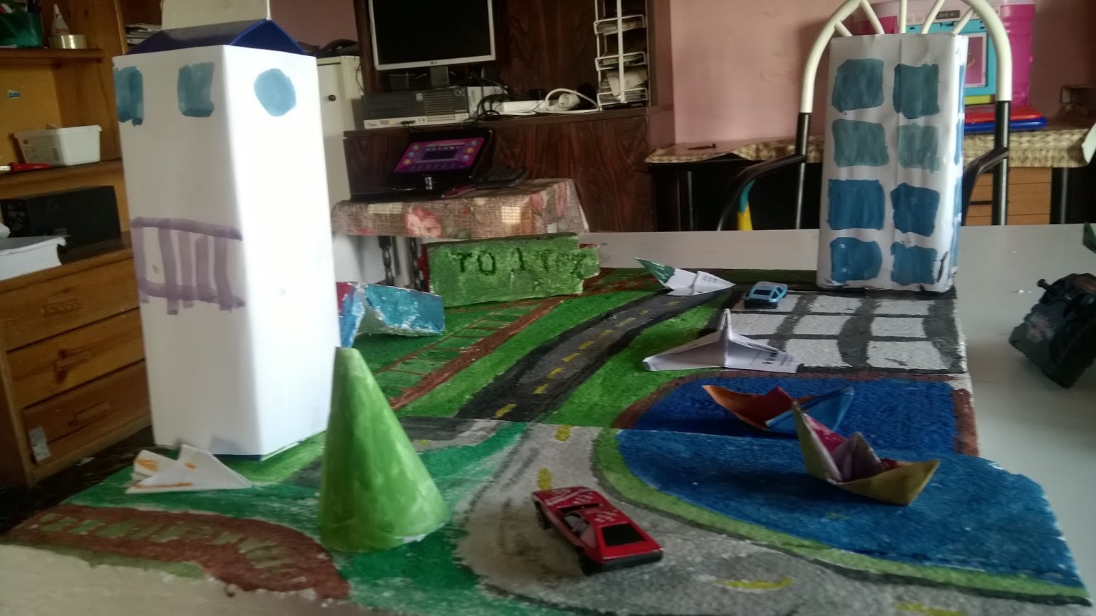 Today work on modern vehicles we use to travel.It’s a huge transportation topic and kids especially boys love to make or buy and play with cars trucks and construction vehicles. And at the same time, they also enjoy making roads, bridges, road slides and much more things. For that, we have made these Two simple transportation crafts. One is of elder one and the second one was made by the second one.They covered all four big modern ways of transportation.