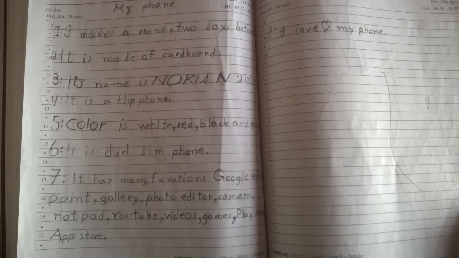 I asked him to write down the features(essay) of his Phone.