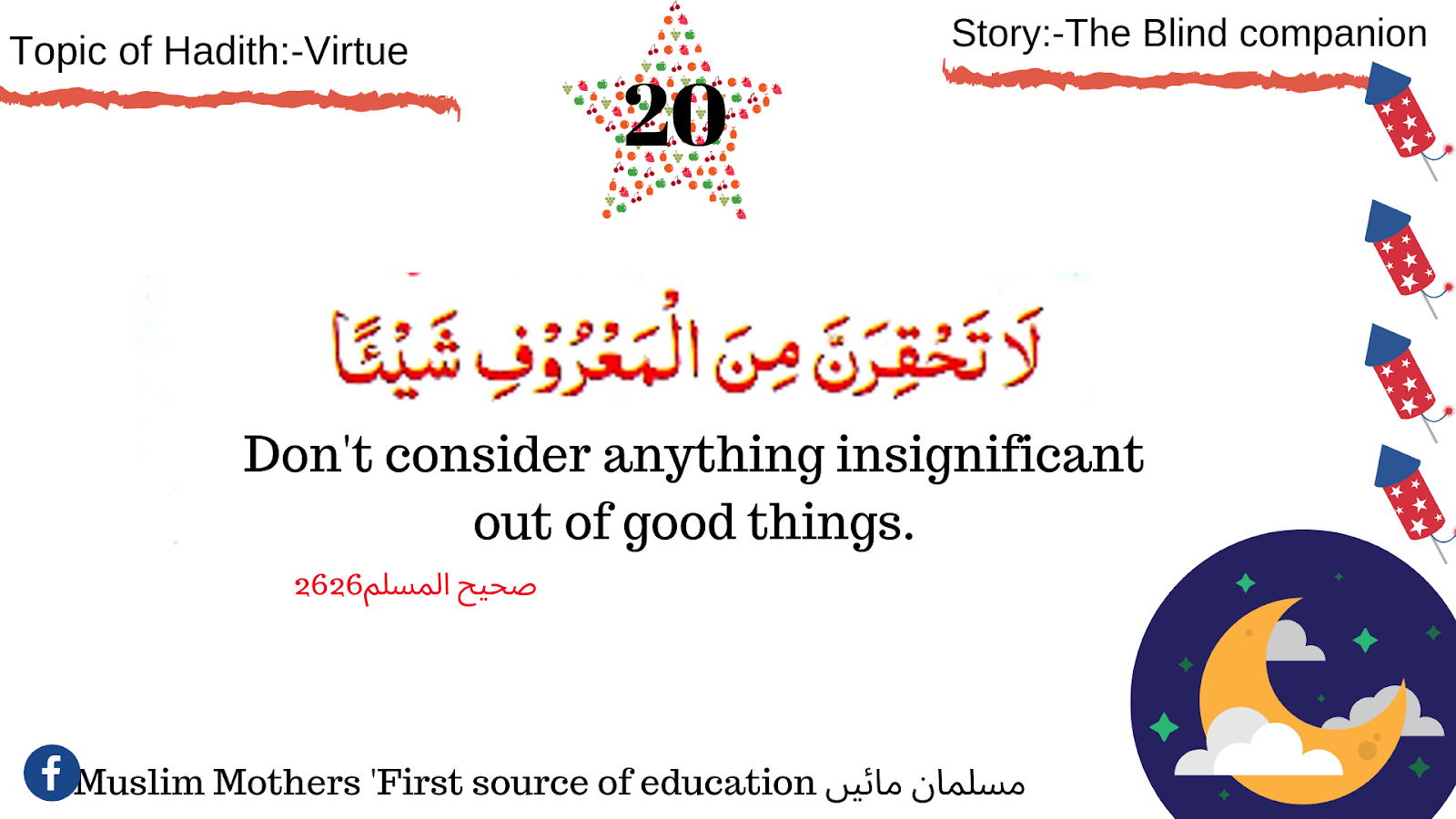 Our story of the day is about a blind Companion of Our Prophet which was very eager to take an active part in every good deed and at last, he got Shahadat from Allah. almighty. Read the full story here and then tell the story to your kid with hadith subject.